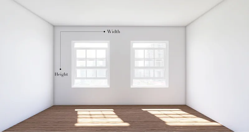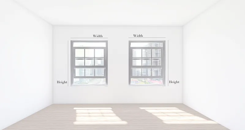 ثم أخذ قياسات النوافذ (العرض في الارتفاع)، مثال: نافذتان، كل نافذة بعرض متر وارتفاع متر.