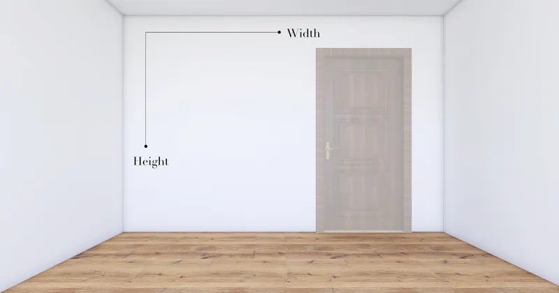 ثم أخذ قياسات الباب (العرض في الارتفاع)، مثال: باب طوله متر واحد وعرضه متران ونصف.