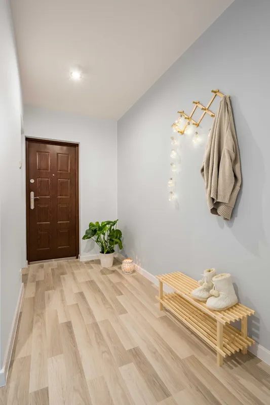 يعكس هذا اللون الأزرق الرمادي اللطيف (ريني CT-2124) الاقتران التكميلي الرائع مع درجات الألوان الخشبية الفاتحة والداكنة للأرضية والجدران عند مدخل المنزل يمكن تنسيق هذا اللون مع جميع ألوان وأنواع الأرضيات، وسيبدو رائعاً مع الأرضيات الفاتحة، والمائلة للأبيض.