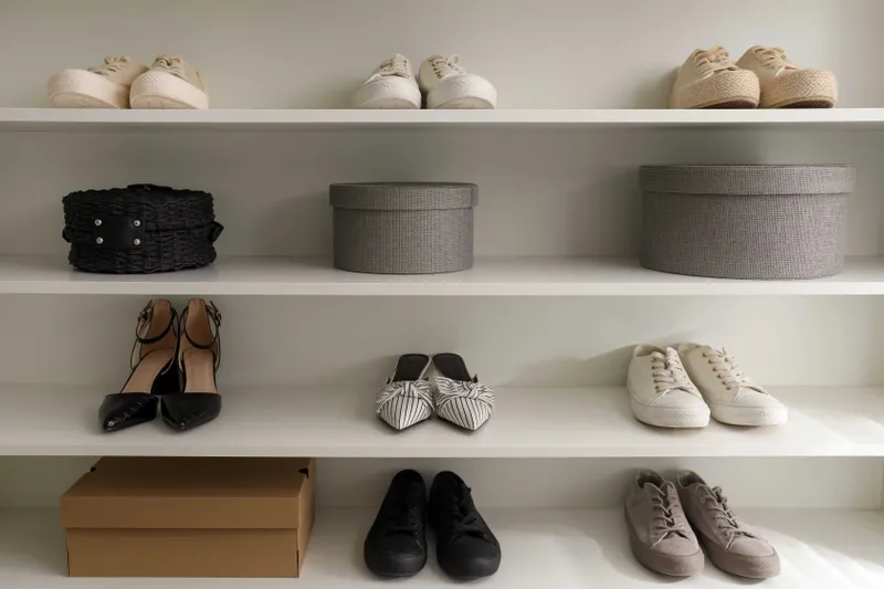 تجنب وضع الأحذية بعشوائية عند المدخل؛ والأفضل استخدام خزانات الأحذية المقفلة بالقرب من الباب الرئيسي، وذلك ليساعدك على سرعة تنظيم الأحذية بمجرد خلعها.